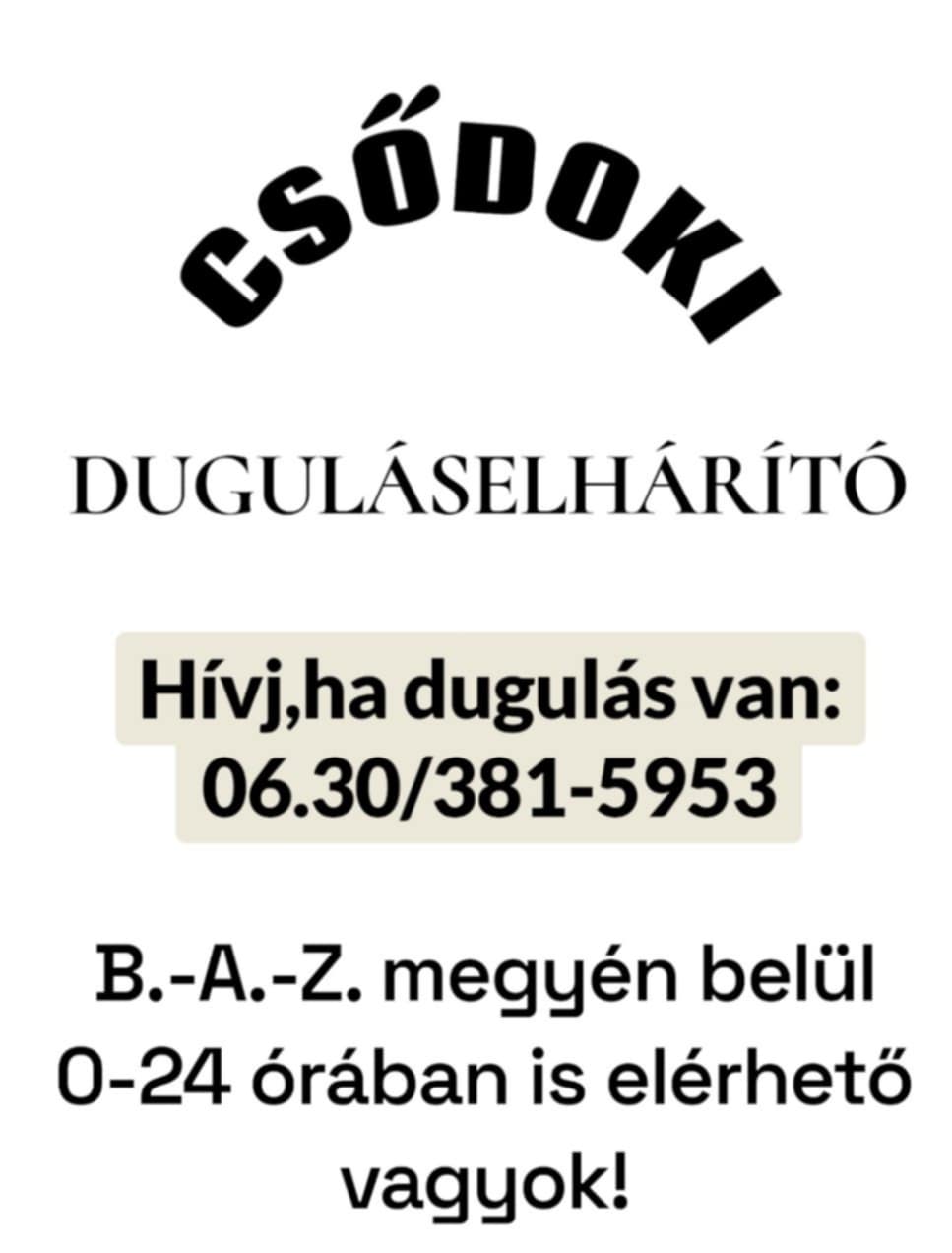 Dugulás elhárítás 0-24-ben B.A.Z. megyén belül modern gépekkel kivitelezve, bontás nélkül!